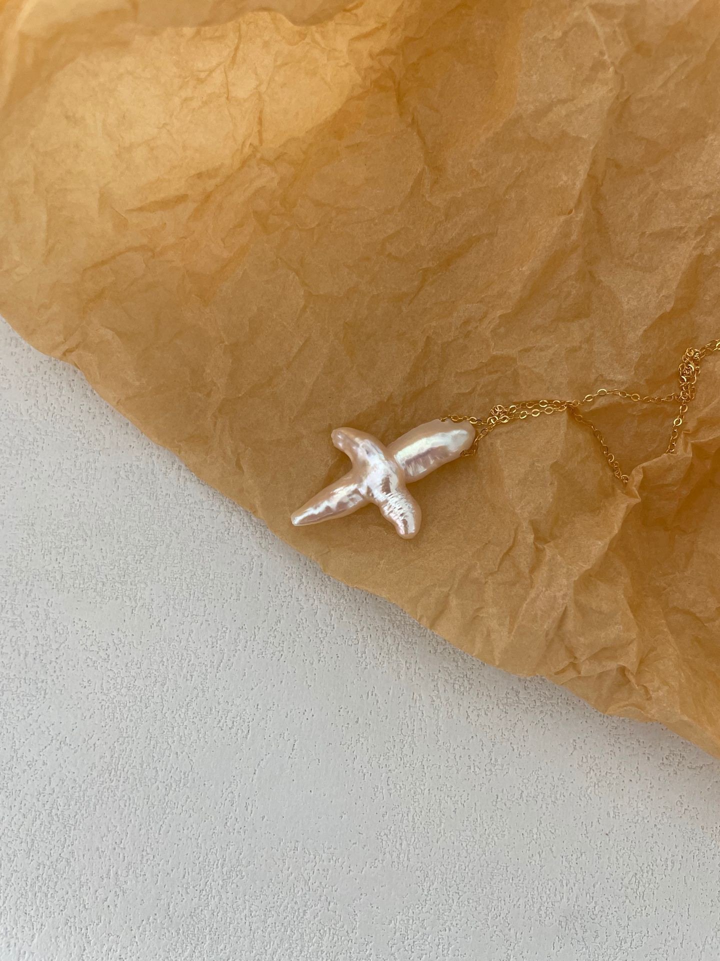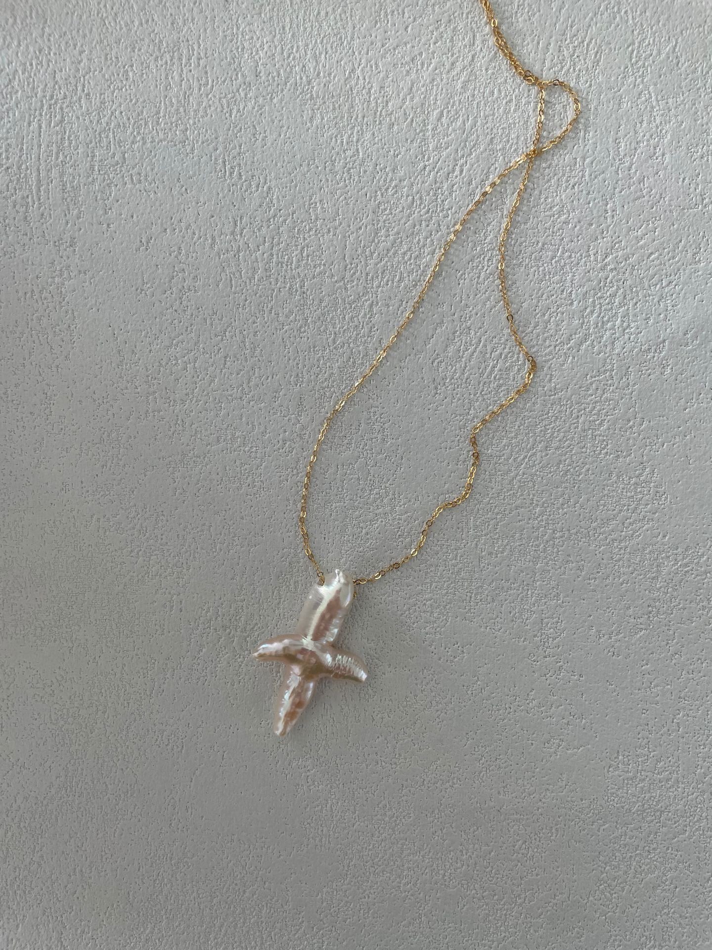 This cross pearl simple chain necklace pick – baroque cross shape pearl, the perfect blend of faith symbols and modern jewellery aesthetics, minimalist design is suitable for daily stacking as well as wear alone, whether with casual or formal wear can add a sense of restrained sophistication to the look, interpreting the simple but not simple fashion attitude.