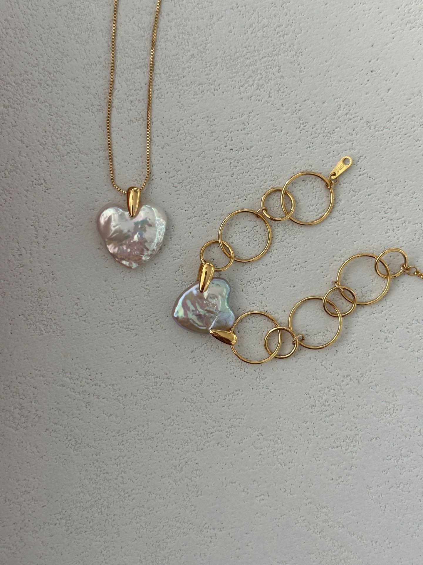 – Item No.:634 – Cultured Pearl Geometric Circle Heart Bracelet